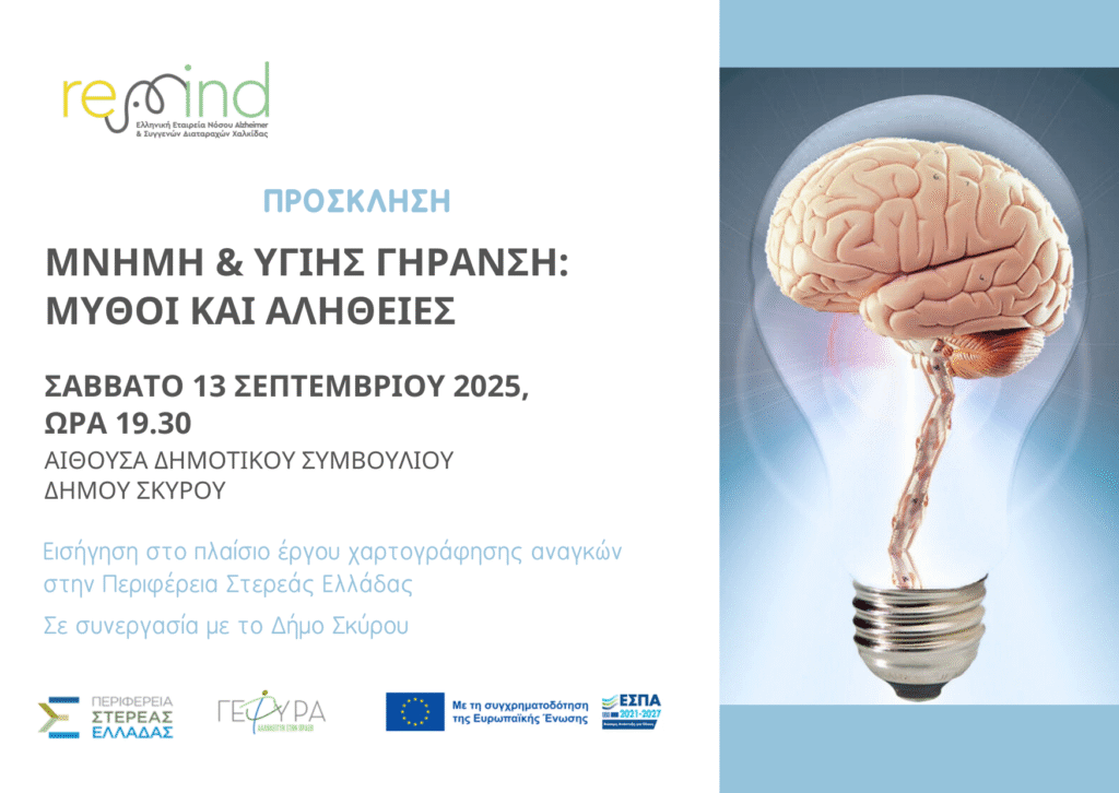 Μνήμη & Υγιής Γήρανση: Μύθοι και Αλήθειες- Ένα ταξίδι Πρόληψης στην Περιφέρεια Στερεάς Ελλάδας