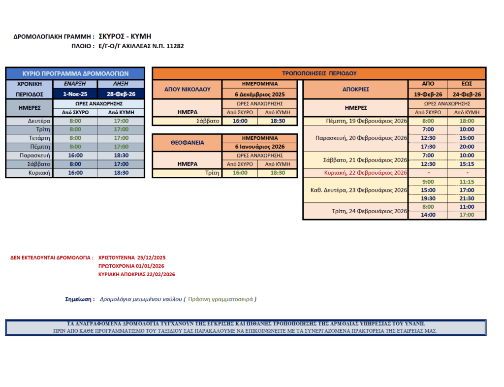 Δείτε τα αναλυτικά δρομολόγια του ΕΓ/ΟΓ “Αχιλλέας”